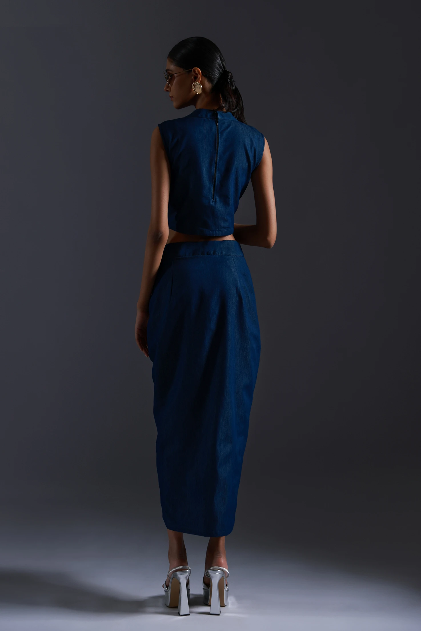 Rouched denim skirt can be purchased seperately to complete the set