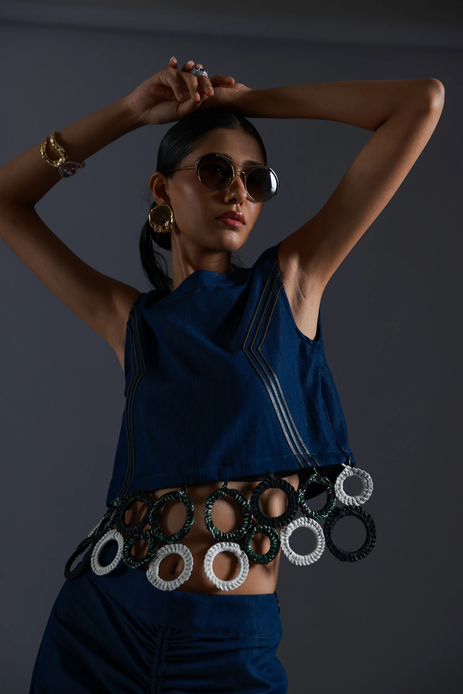Denim Top With Dangling Circles