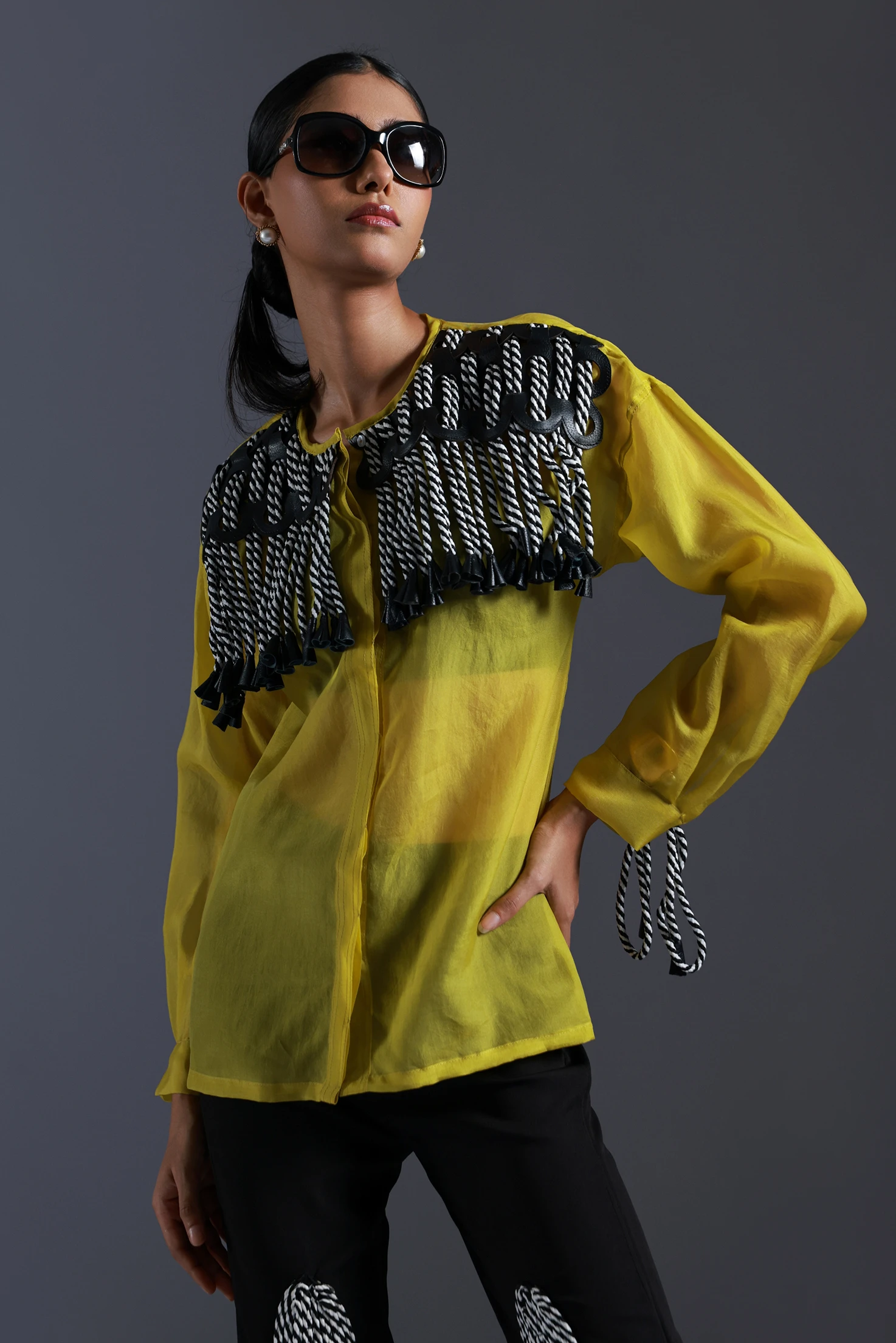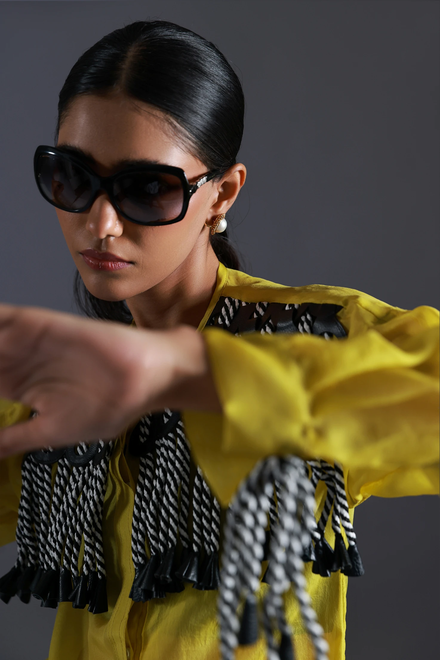 Leather parts are lasercut and joined to form panels with the dori handwoven through it