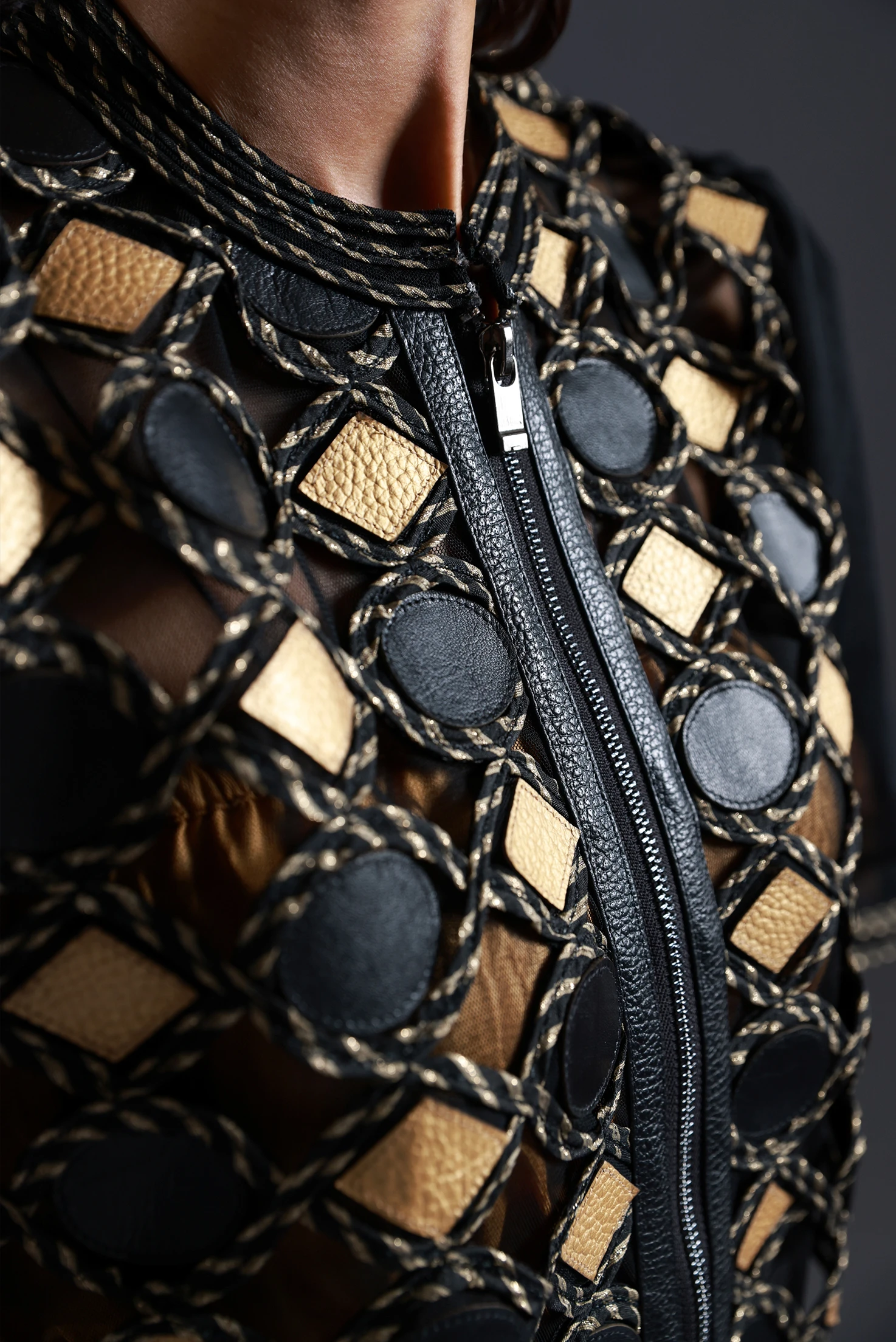 Applique and weave made using scrap leather and metallic lace
